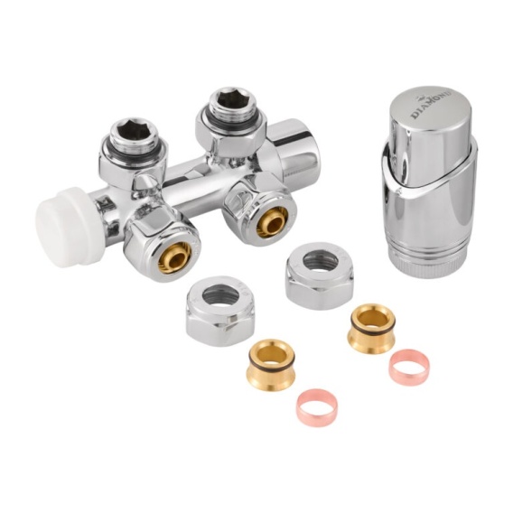 ZESTAW TERMOSTATYCZNY DO GRZEJNIKA, ZESPOLONY KĄTOWY CHROM R 1/2", 16 PEX / 15 Cu