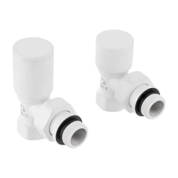 ZESTAW ZAWORÓW GRZEJNIKOWYCH, DN15(1/2), KĄTOWY, BIAŁY PREMIUM