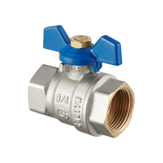 Zawór kulowy "Hiszpan" mosiężny DN15 1/2" GW/GW PN30 motylek. Do instalacji wodociągowej i CO. Korpus: mosiądz, uszczelnienie: PTFE. PN30.